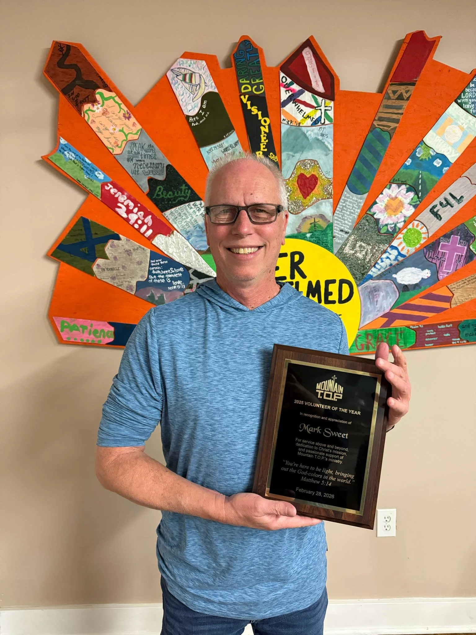 Mark Sweet has volunteered with Mountain T.O.P. for over 20 years. He has served with Youth Summer Ministry, Adults in Ministry, and Friends Weekend. Mark has been an especially valuable contributor to many facility projects, specifically helping us with repairing the Dining Hall roof and our air conditioning project last year. We are so grateful for Mark’s constant support and presence!