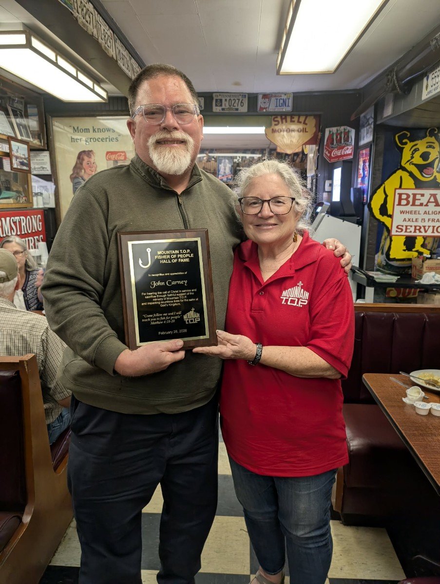 The Fisher of People Hall of Fame celebrates long-time and dedicated volunteers whose generous support and presence support our mission. Inductees are voted on by the Mountain T.O.P. staff, Board of Directors, and existing inductees. We welcome three new people into the Hall of Fame: Anita Burleson, John Carney, and Debbie Swords.