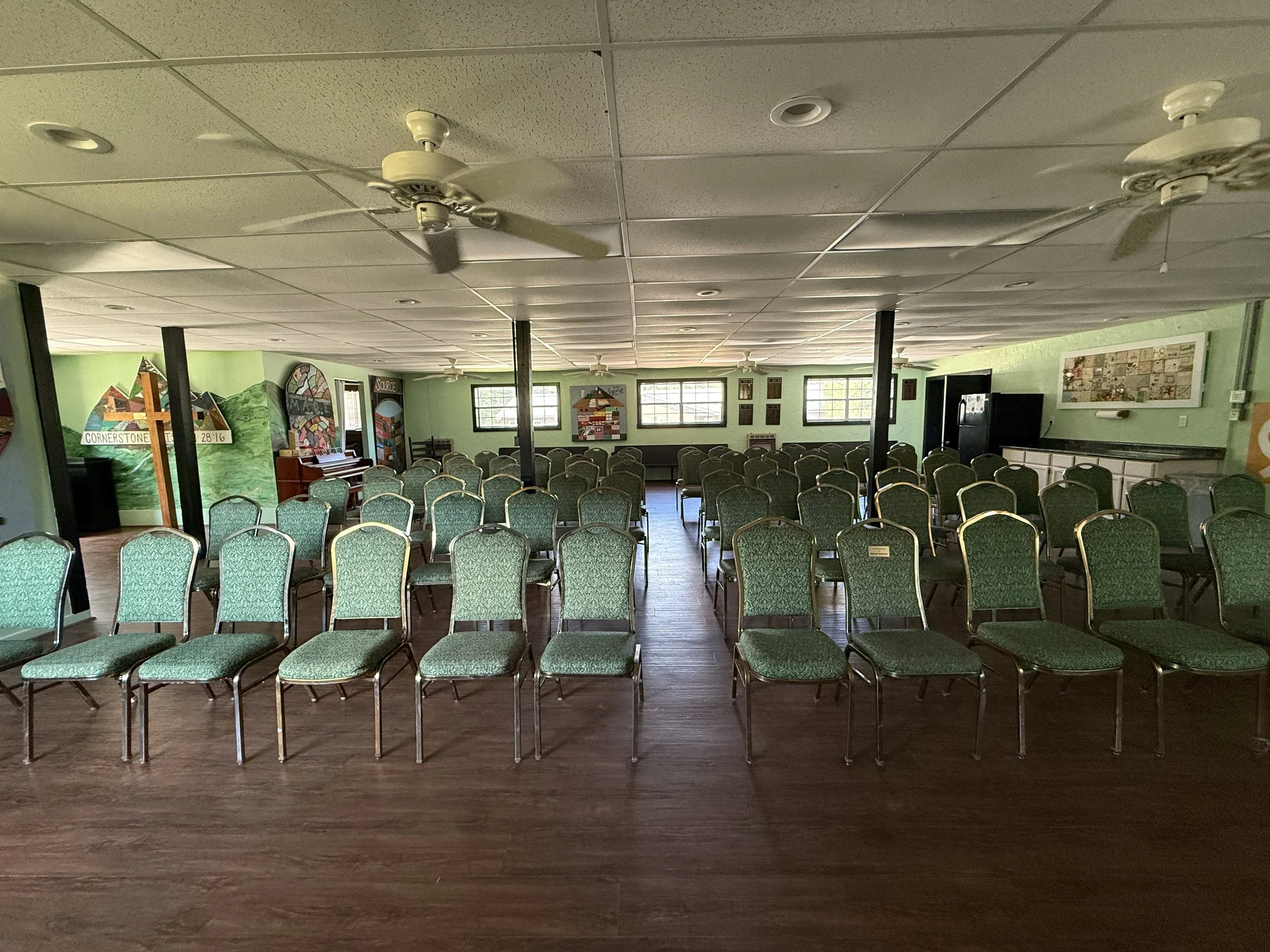 This meeting space serves as a great place to gather for meetings, trainings, or workshops. It can seat up to 80 people and is equipped with a screen and projector.