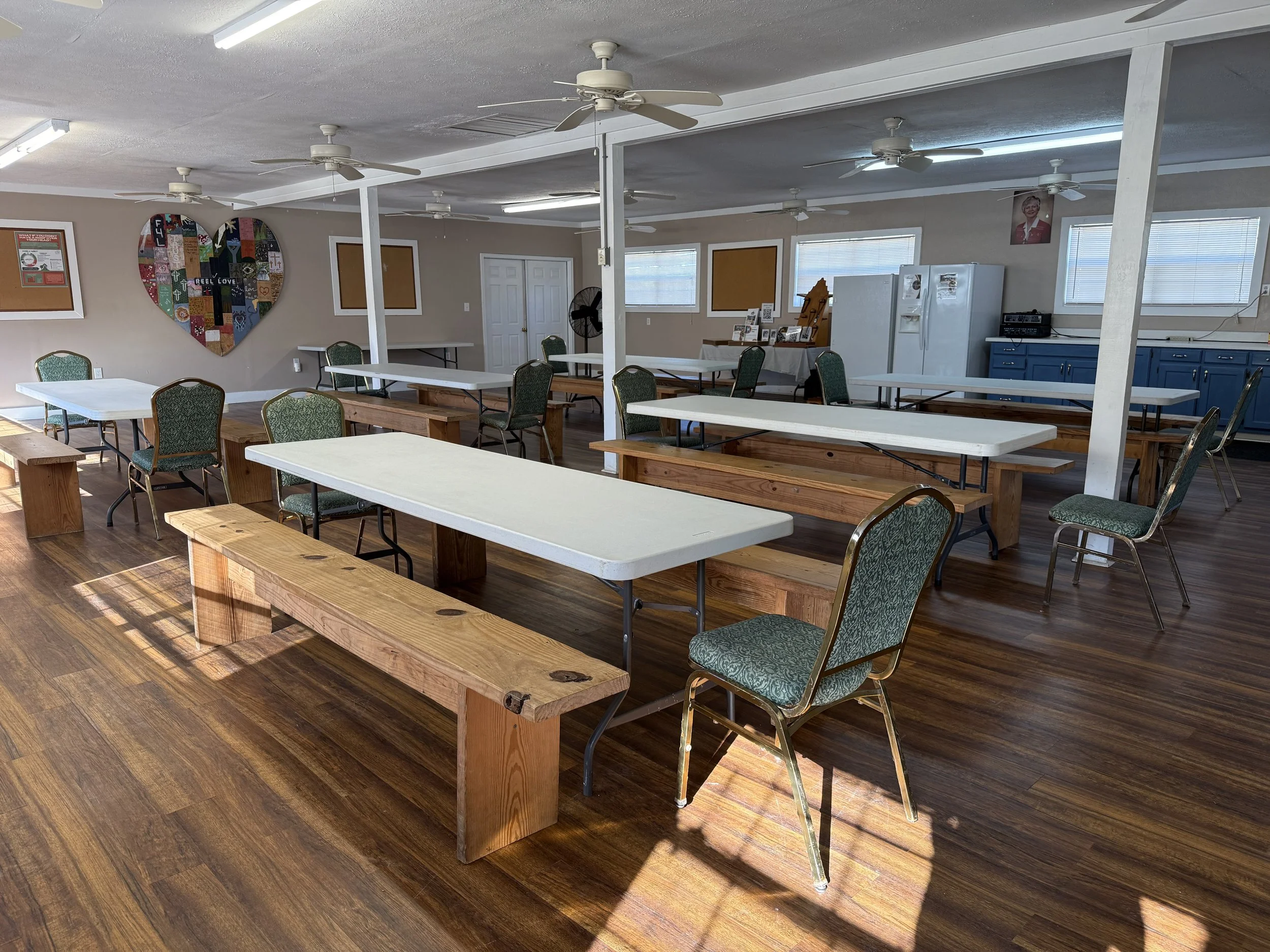 Our Dining Hall can serve up to 150 guests. Our kitchen staff loves to serve our guests well. With advanced notice, we can accommodate most dietary needs and allergies.